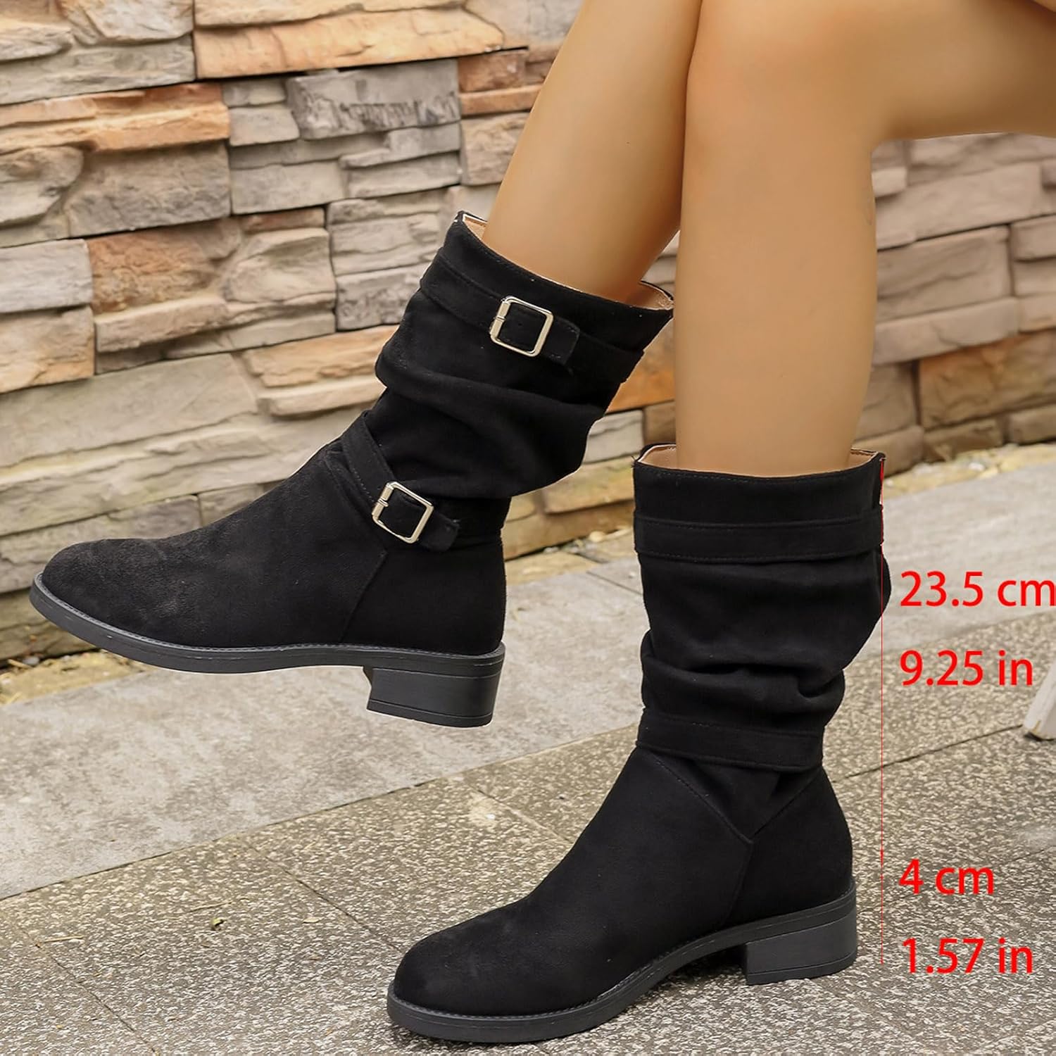 Be the first to review “Womens Slouchy Mid Calf Boots Fashion Round Toe Suede Boots for Women Chunky Low Heels Side Zipper Pull On Booties Classic Solid Color Comfortable Casual Non Slip Wide Width Boot Shoes” Cancel reply