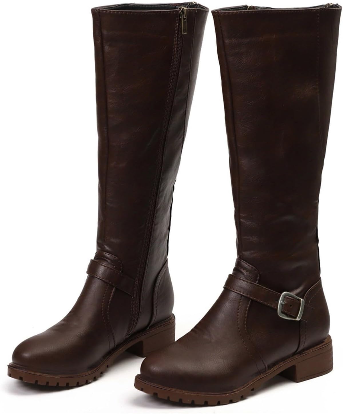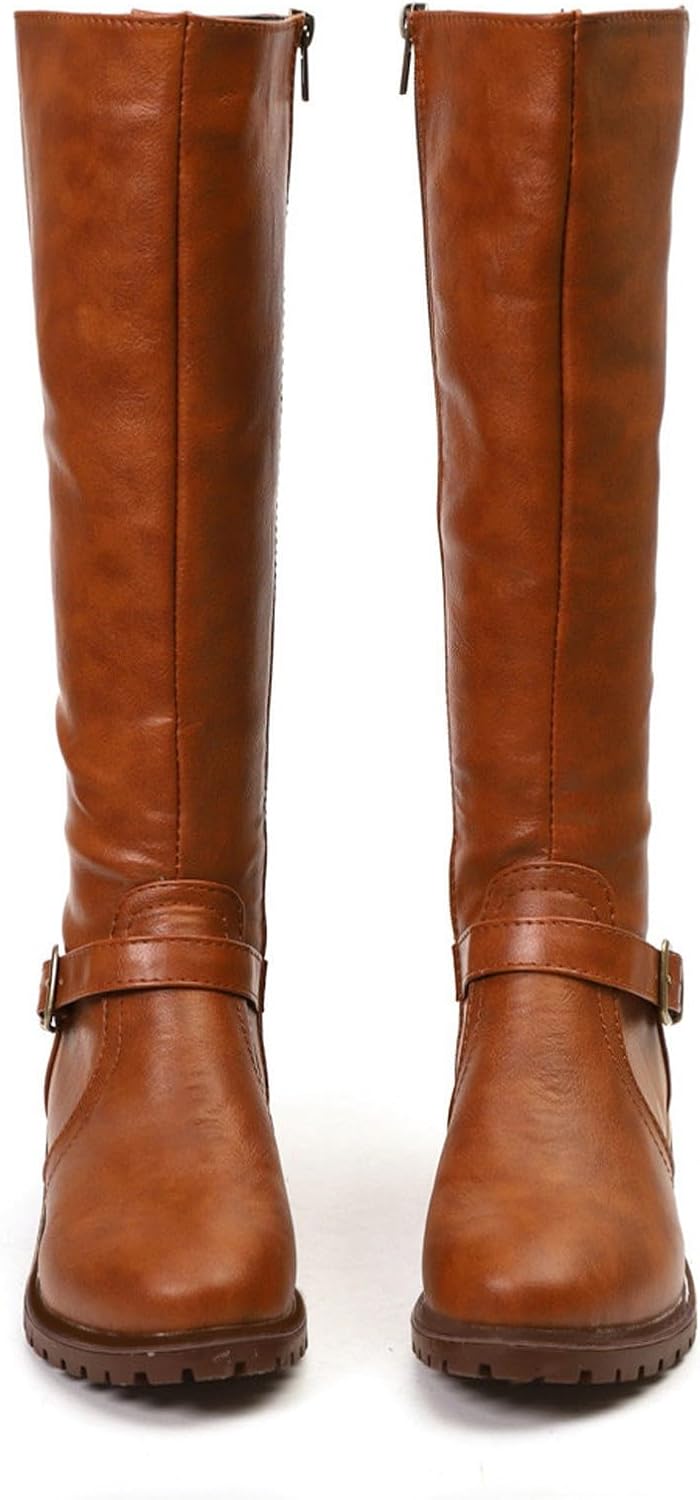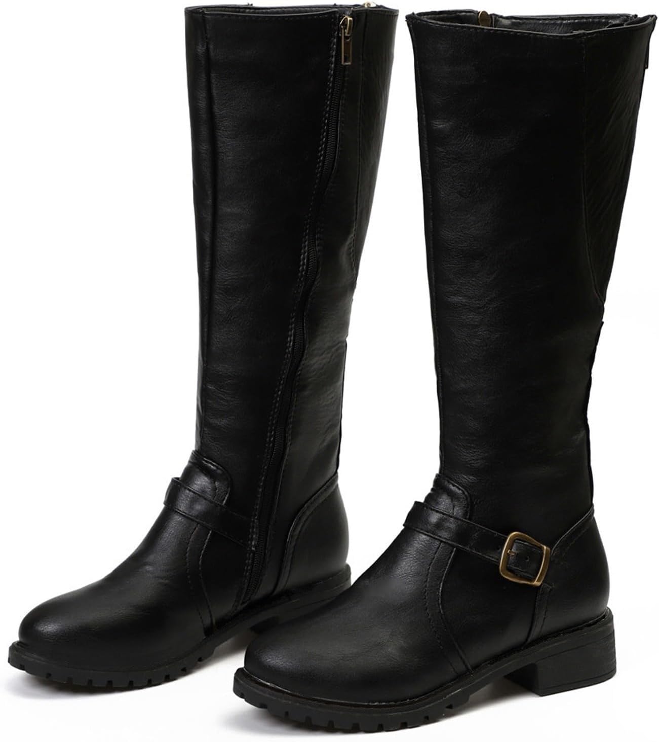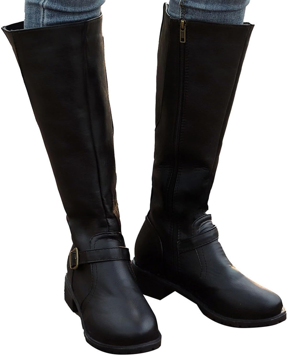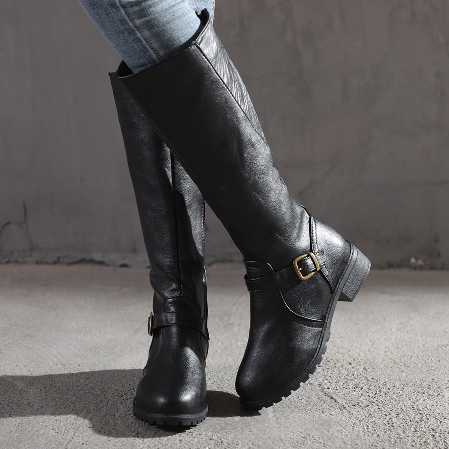 Women’s Square Toe Cowboy Boots Solid Thick Sole Square Heels Zipper Mid Booties Round Toe Rain Boot