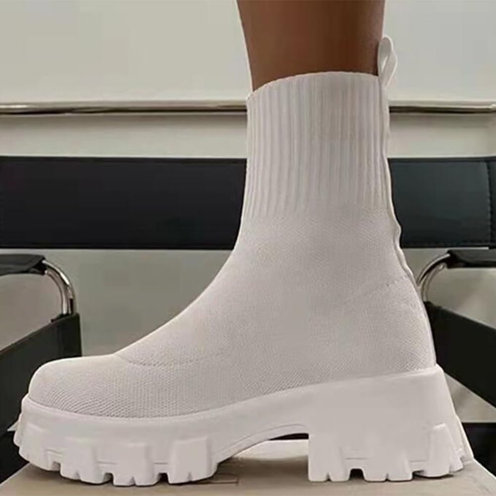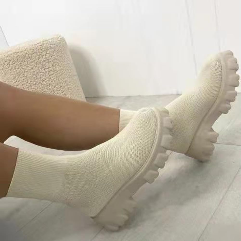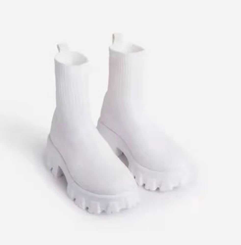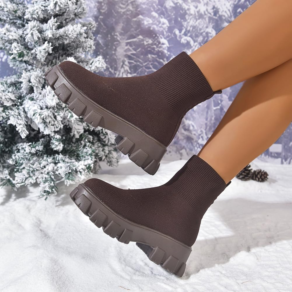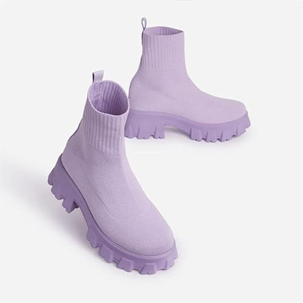 Women’s Stretch Knit Boots Platform Sole Chunky Heeled Round Toe Elastic Breathable Mid Heel Slip-on Socks Boots Chelsea Ankle Booties