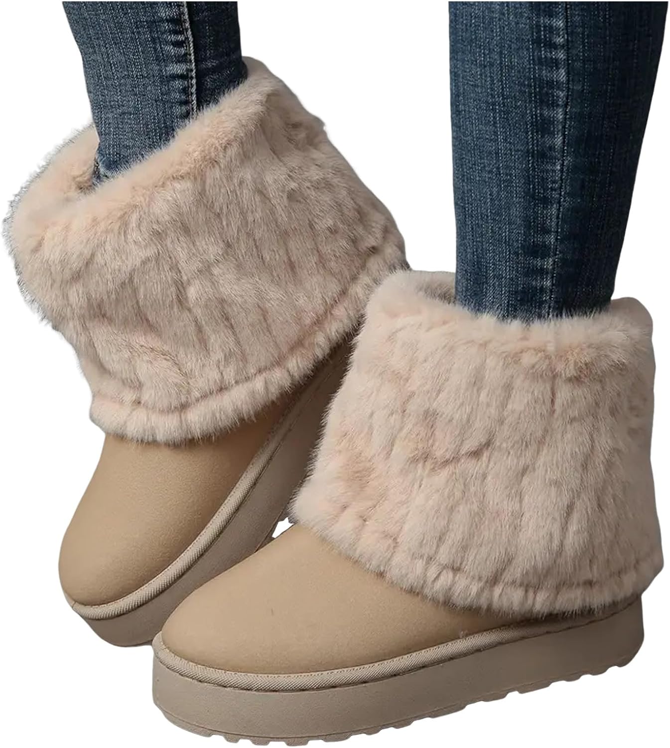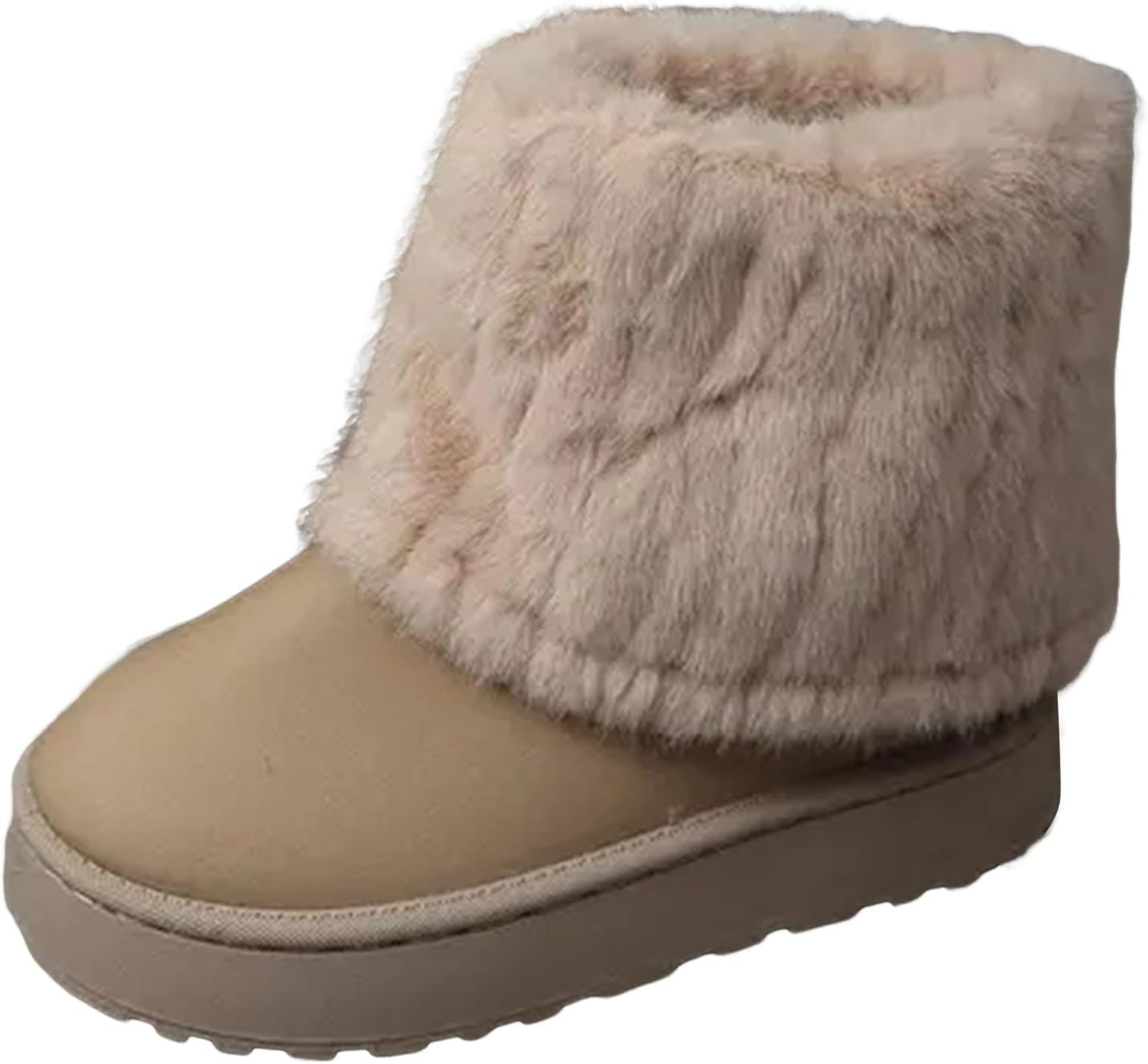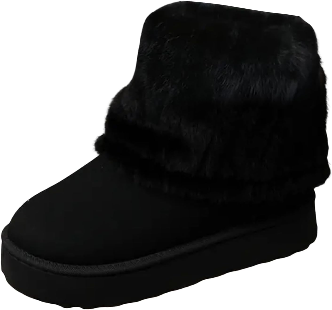 Women’s Thickened Round Toe Boots, Flip Up Short Tube Design, Plush Velvet Warm