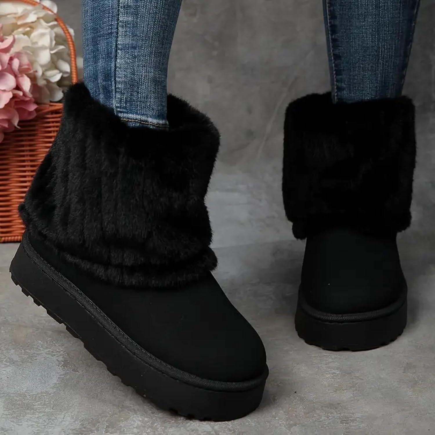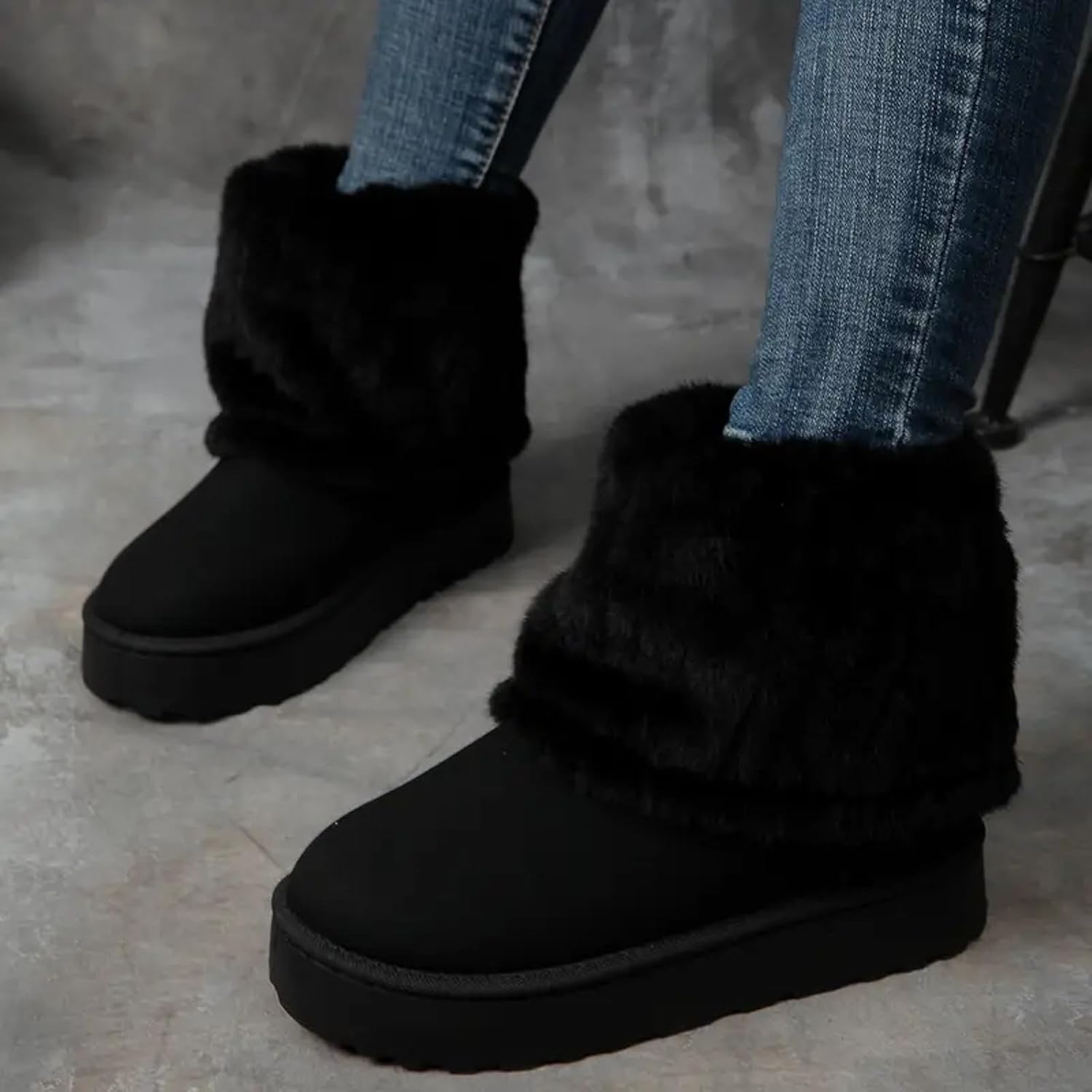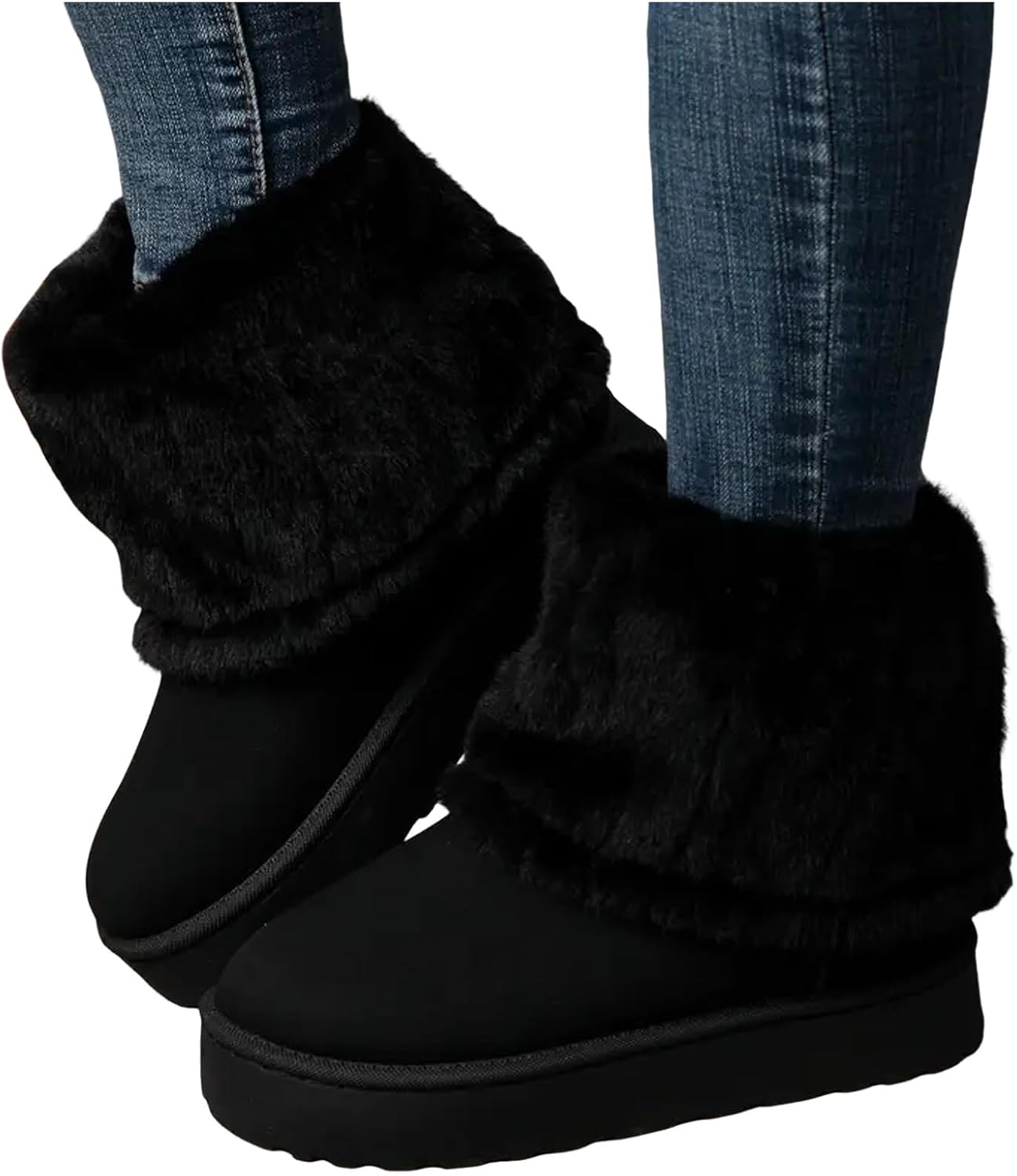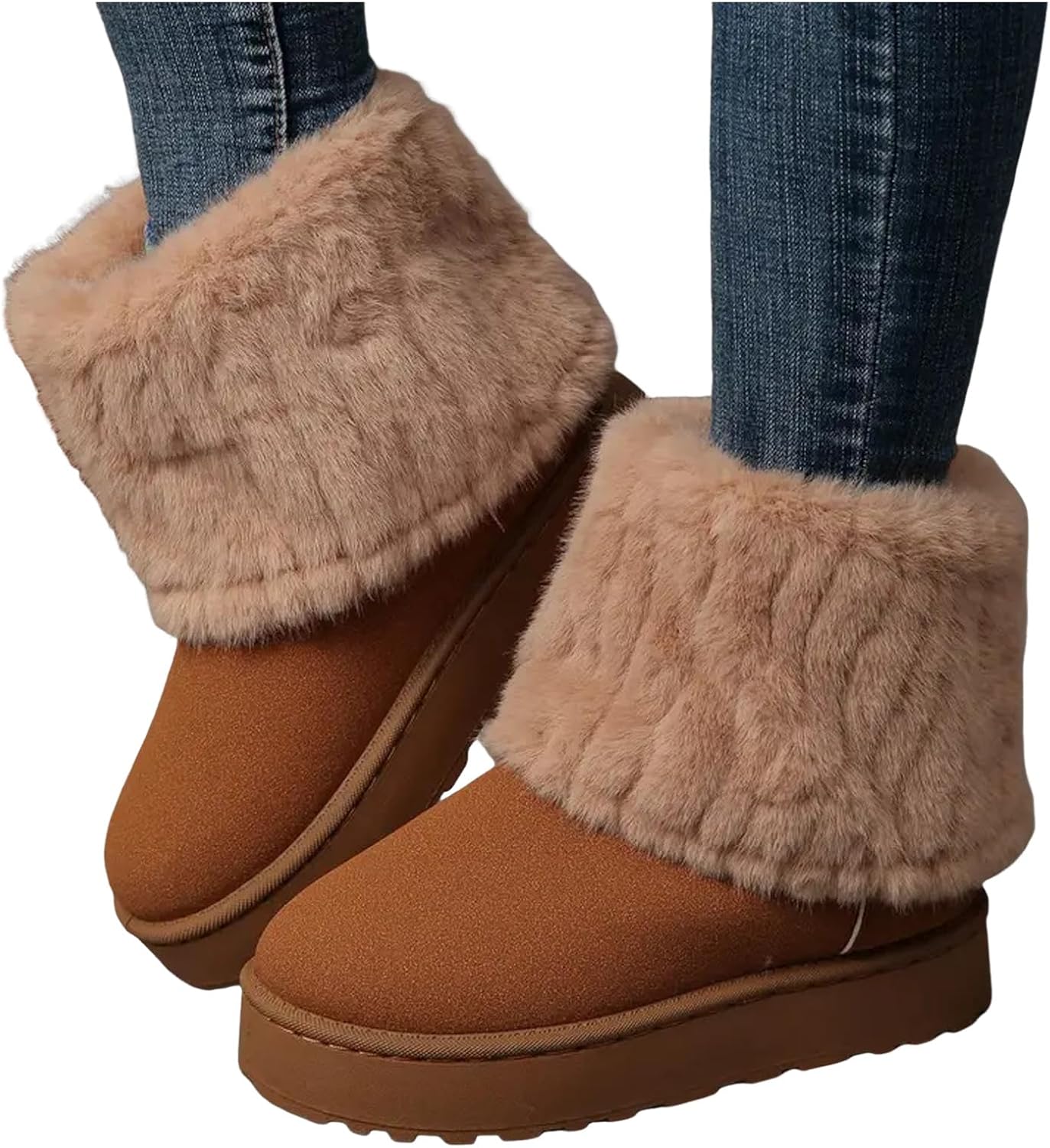 Women’s Thickened Round Toe Boots, Flip Up Short Tube Design, Plush Velvet Warm