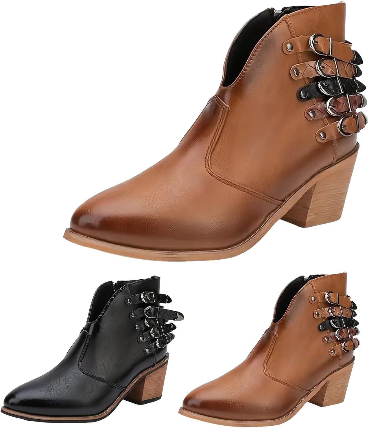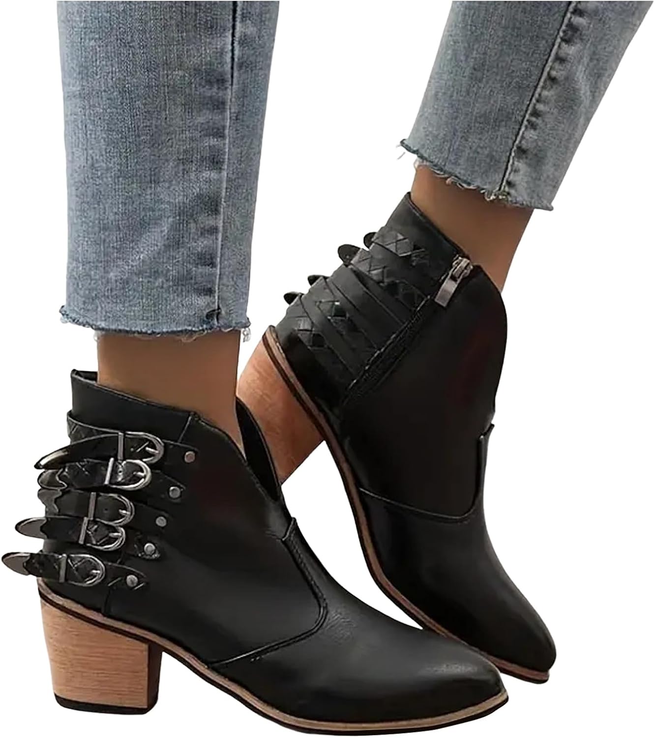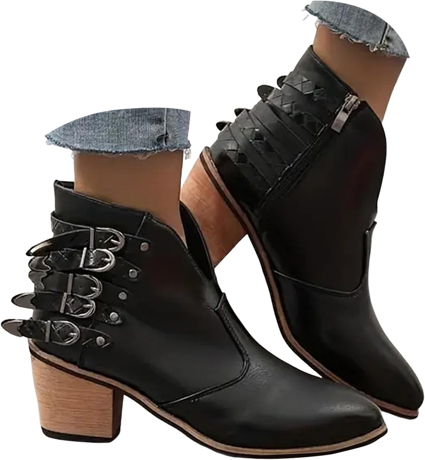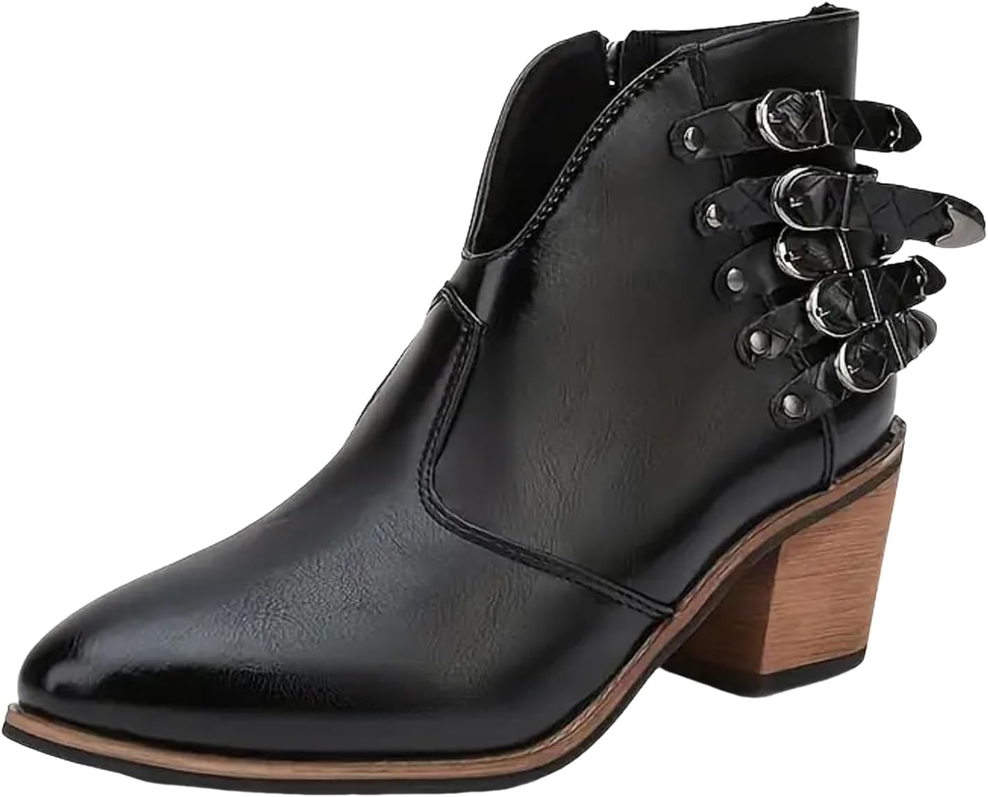 Be the first to review “Women’s V Cut Out Stacked Heel Retro Ankle Boots with Belt Buckle Side Zipper Block Low Heel Pointed Toe Goth Punk Boot Women Chunky Heels Fall Winter Leather Short Booties Shoes” Cancel reply